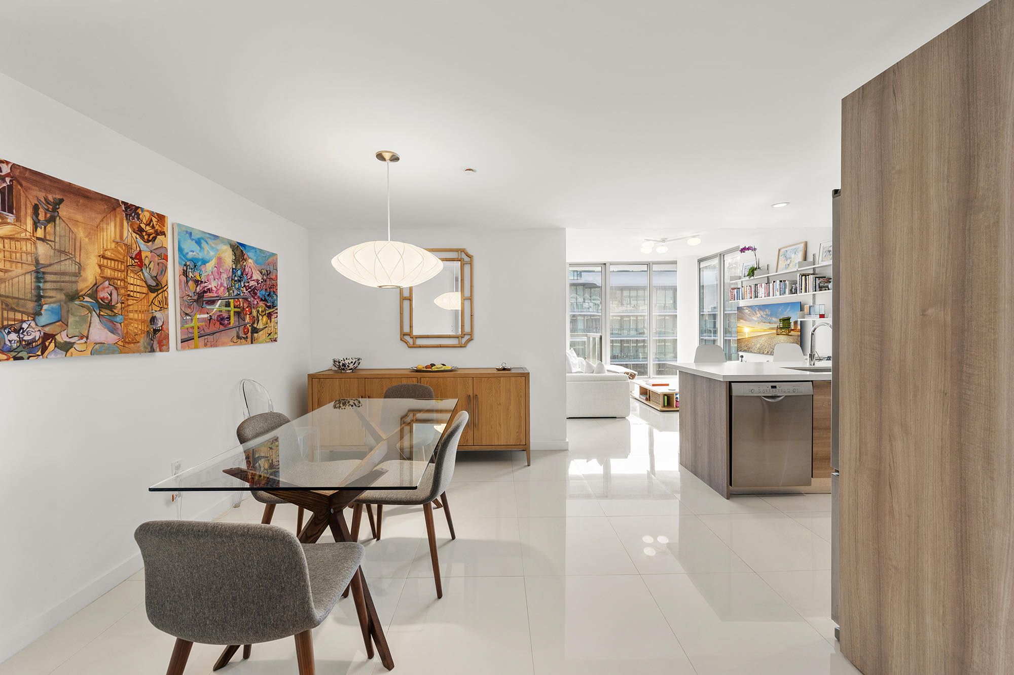 Beautiful 2-bedroom, 2-bath residence located at Kai at Bay Harbor, an exclusive boutique waterfront building featuring only 7 floors and 54 residences, offering a very private and intimate living environment. This thoughtfully designed unit features an open-concept layout with white porcelain floors and floor-to-ceiling impact glass that allow for abundant natural light throughout the living spaces. The residence offers a contemporary European-style kitchen with Bosch appliances, white quartz countertops, modern cabinetry, and elegant finishes, seamlessly flowing into the spacious living and dining areas. A private balcony provides the perfect space to relax and enjoy the surrounding views. Residents of Kai at Bay Harbor enjoy a rooftop amenity deck designed for relaxation and entertainment, featuring a rooftop pool, four BBQ areas, fire pit, and a social lounge, with new furniture being added to further enhance the rooftop experience. The building offers a boutique lifestyle with privacy, comfort, and modern design. Ideally located just minutes from the beach, Bal Harbour Shops, world-class dining, and top-rated schools, this residence offers a rare opportunity to live in one of the most desirable communities in Bay Harbor Islands, known for its charm, walkability, and convenient access to Miami Beach and surrounding areas.